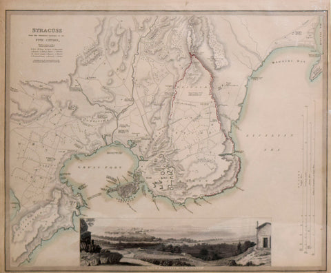 1839 Antique Map Plan of SYRACUSE Sicily Italy Five Cities SDUK