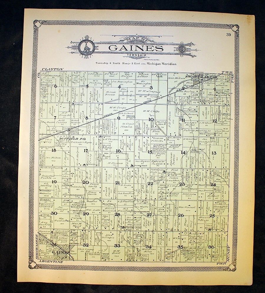 1907 Gaines Township Plat Map Genesee County Michigan Original | eBay