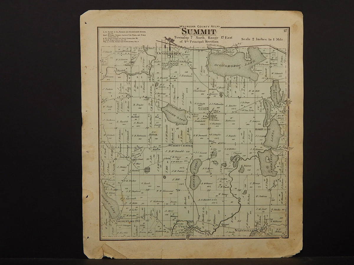 Wisconsin, Waukesha County Map, 1873 Town of Summit O3#29 | eBay