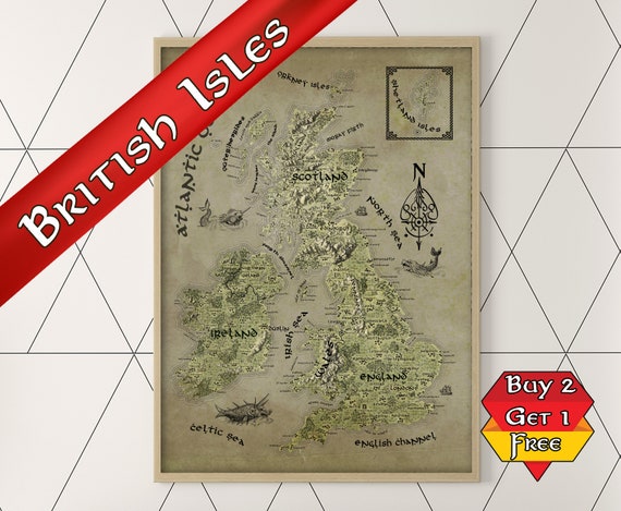 Buy UK Fantasy Map Poster British Isles Print Hand Drawn Geeky
