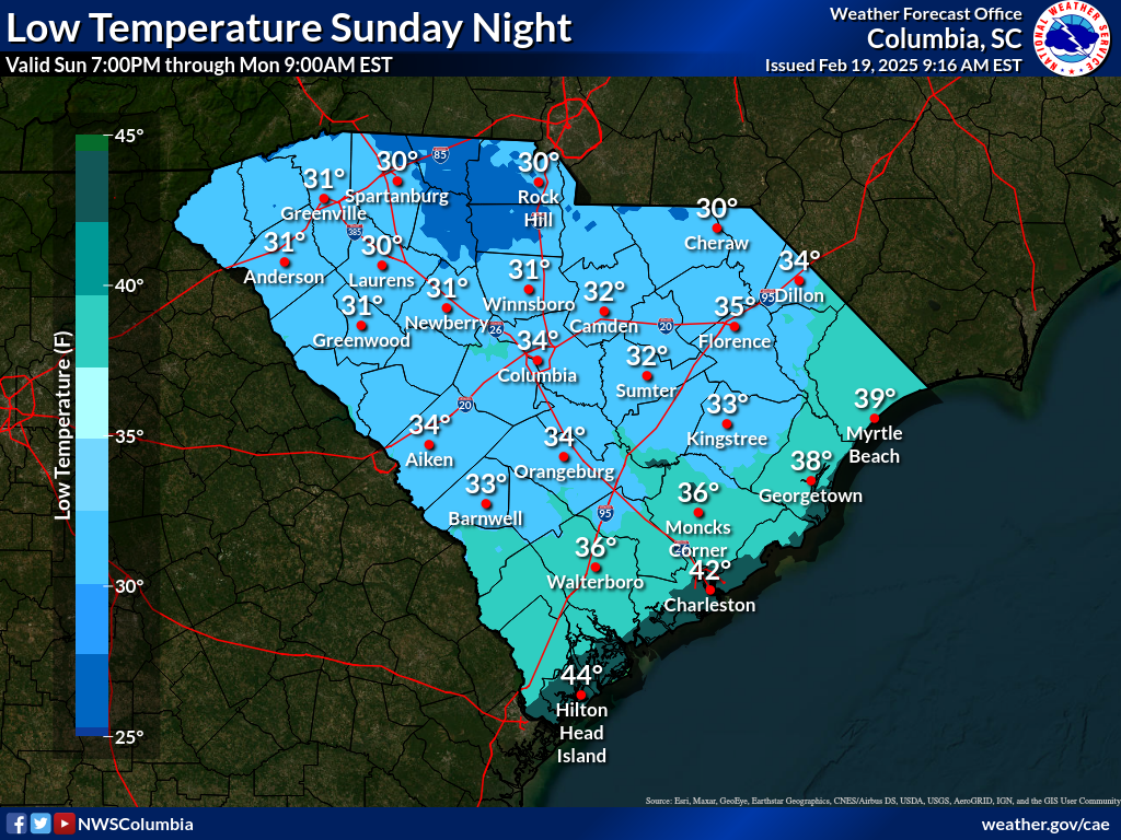 Weather Map Columbia Sc – We may see low to mid-40s temps and calm winds as Thursday comes to an end. Due to a surface cold front moving through our area, Friday morning temperatures will be close to normal. Friday . A wind lake advisory is in place for central South Carolina and east central Georgia through Friday night at 8 p.m. .