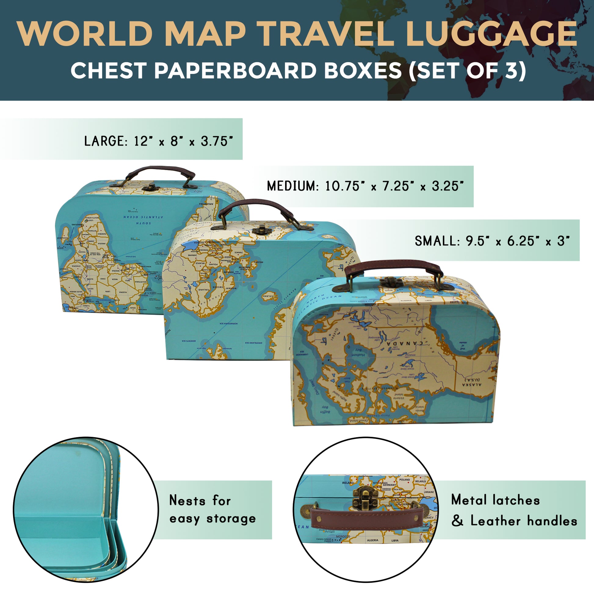 World Map Luggage Chests 3 Sizes (3 Pack) โ Discount Party Supplies